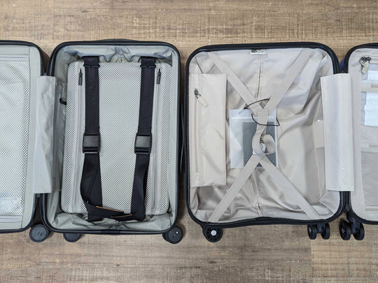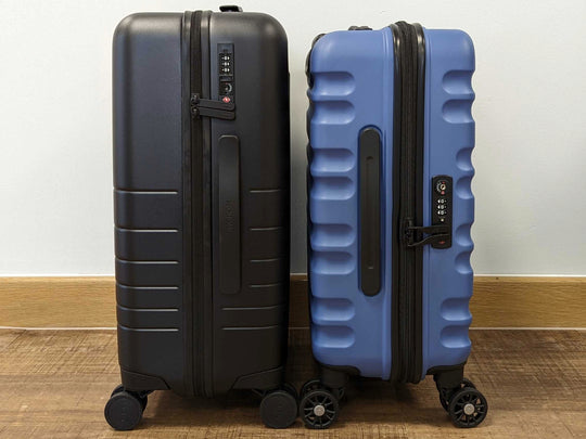 Monos (left) is committed to creating premium luggage with no compromises. See the up-close comparison photos.